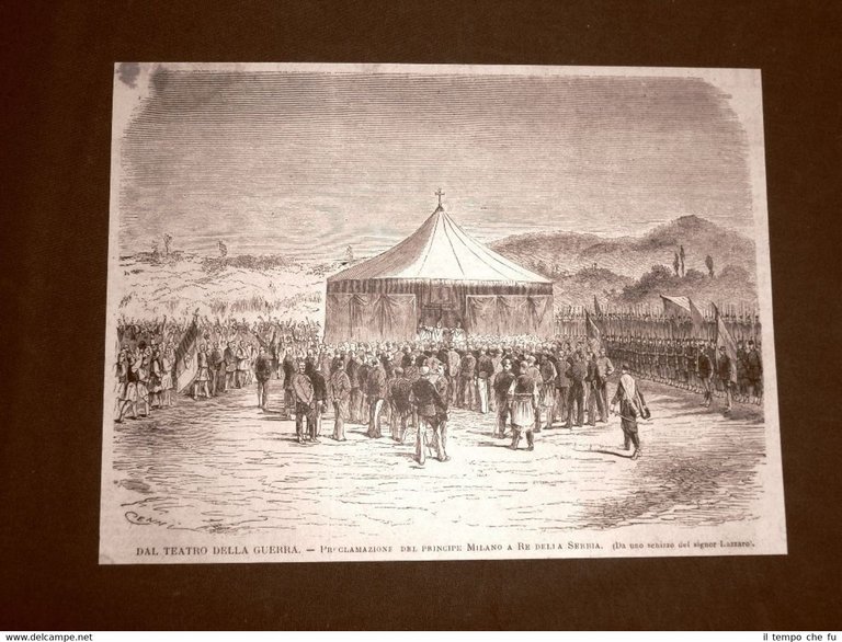 Rara Incisione Estratta da Rivista d'epoca del 1876 . .incisione che ha quindi oltre 140 anni! Guerra tra Serbia e Turchia nel 1876 Proclamazione del Principe Milan a Re di Serbia II1876-088 Dimensioni Cm 22,00 x 17,00 Qualora vogliate delle scansioni migliori contattateci, soddisferemo ogni vostra richiesta. PaypalCarta di creditoBonifico bancario Accuratamente adagiate su un cartoncino e protette da pellicola trasparente rigida,il tutto viene inserito dentro plico di adeguate dimensioni per proteggerne l'integrità.