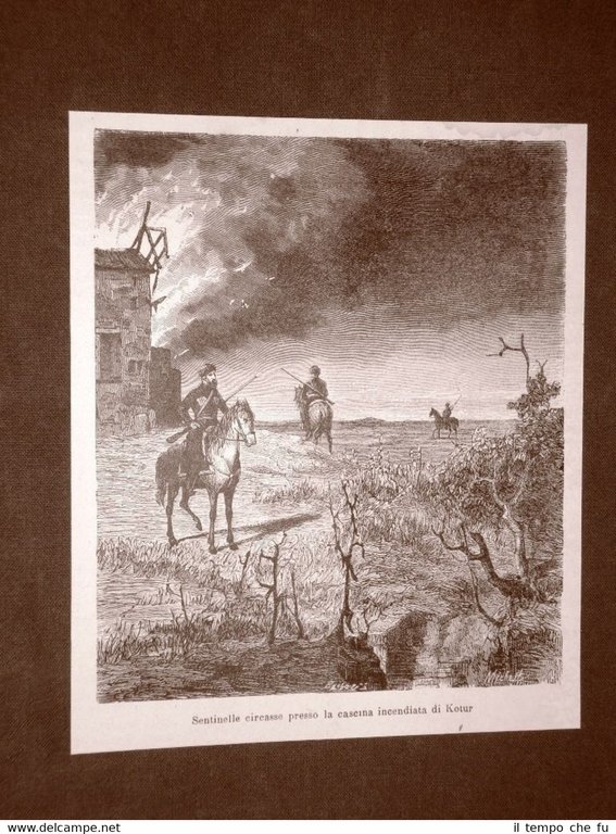 Rara Incisione Estratta da Rivista d'epoca del 1876 . .incisione che ha quindi oltre 140 anni! Guerra tra Serbia e Turchia nel 1876 Sentinelle Circasse presso la Cascina di Kotur incendiata II1876-087 Dimensioni Cm 13,00 x 16,00 Qualora vogliate delle scansioni migliori contattateci, soddisferemo ogni vostra richiesta. PaypalCarta di creditoBonifico bancario Accuratamente adagiate su un cartoncino e protette da pellicola trasparente rigida,il tutto viene inserito dentro plico di adeguate dimensioni per proteggerne l'integrità.