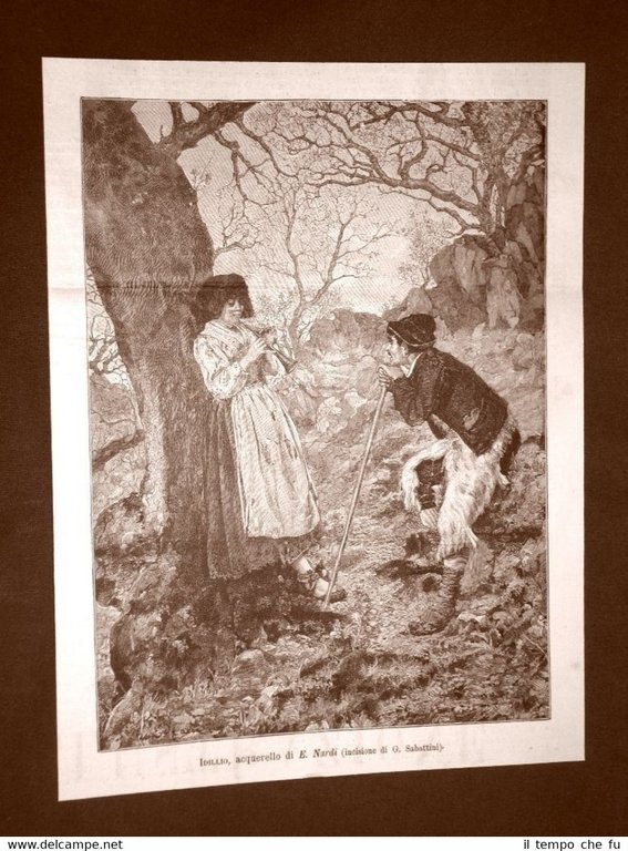 Idillio Acquerello di E. Nardi Incisione di G. Sabattini del 1890