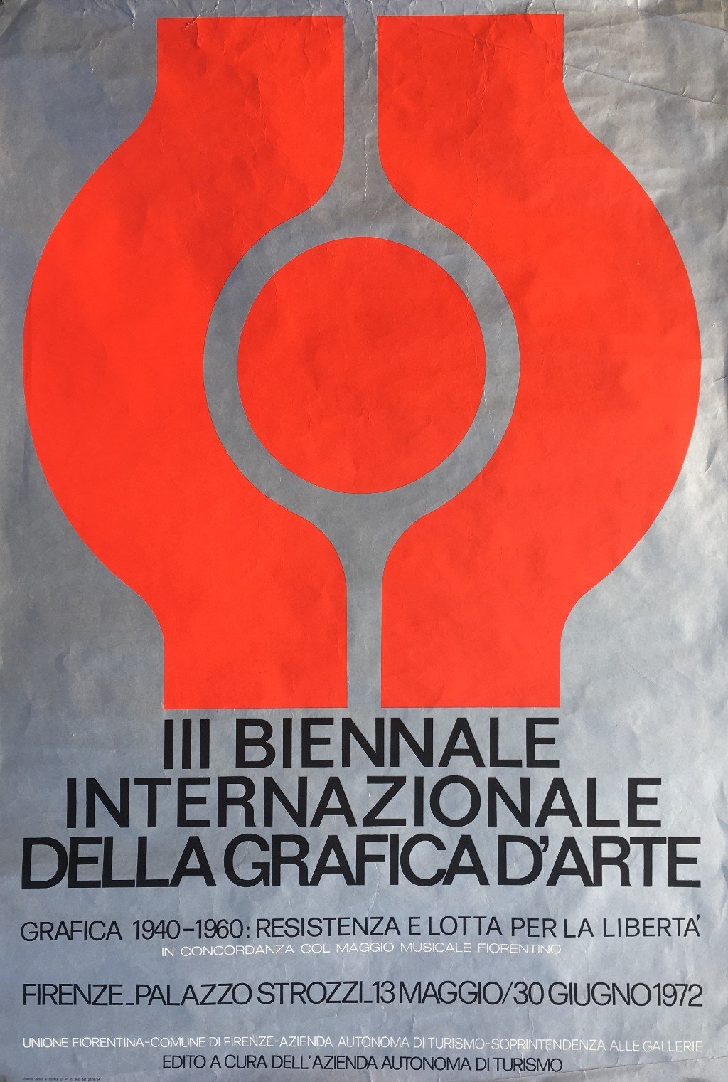 Manifesto originale della III Biennale Internazionale della Grafica d'Arte, Palazzo Strozzi 13 maggio - 30 giugno 1972. Leggero segno del tempo