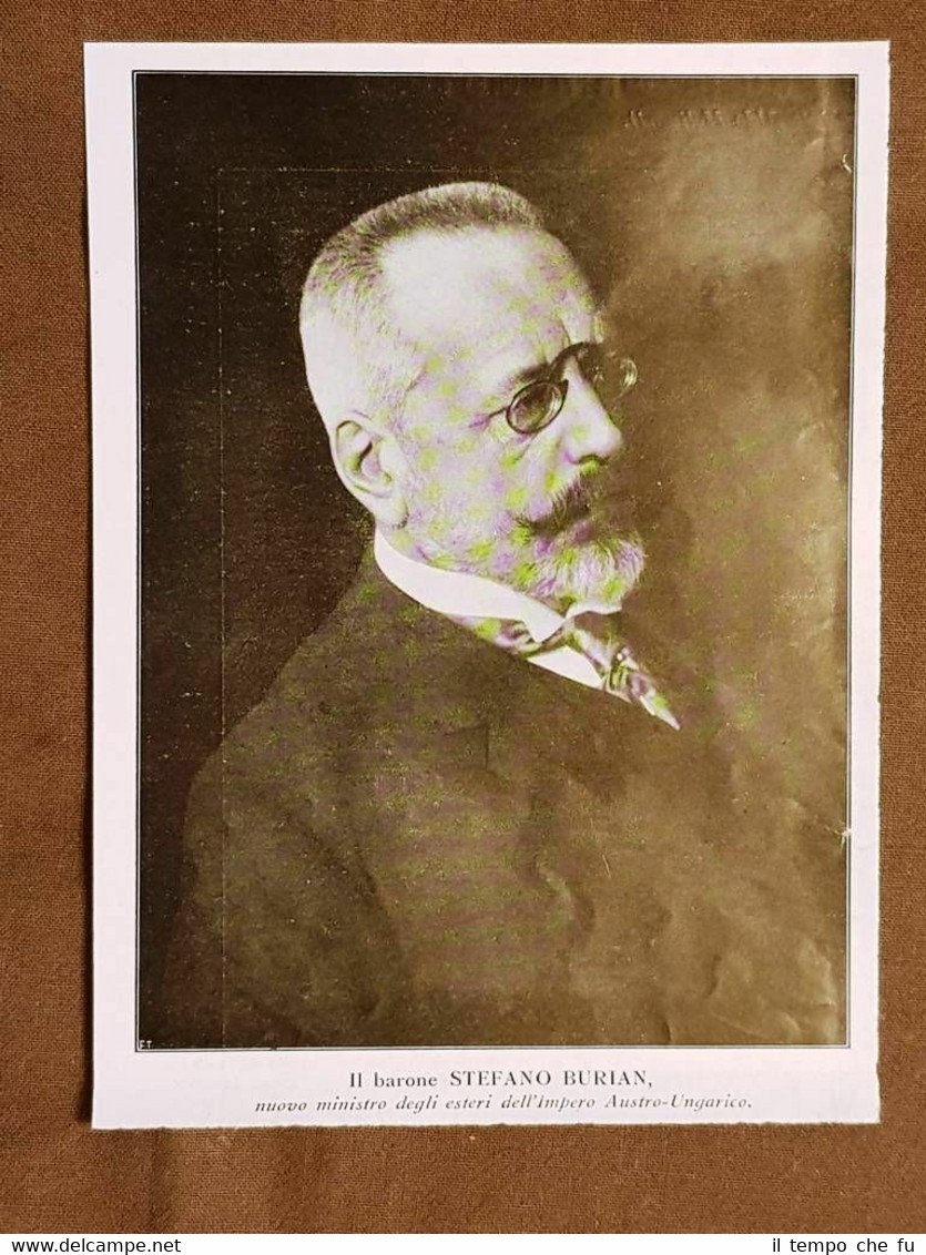 Rara stampa estratta da pubblicazione del 1915. .stampa che ha quindi oltre 105 anni! Il Barone Stephan Burián o István nel 1915 Stampfen, 1852 – Vienna, 1922 Ministro degli esteri dell'Impero Austro-Ungarico Codice articolo: II1915-072 Dimensioni: Cm 12,00 x 17,00 Paypal Carta di credito Bonifico bancario Spedizione con posta ordinaria o raccomandata scelta dall'Acquirente nel momento del pagamento Clicca qui per accedere al nostro Store ed al suo sterminato archivio