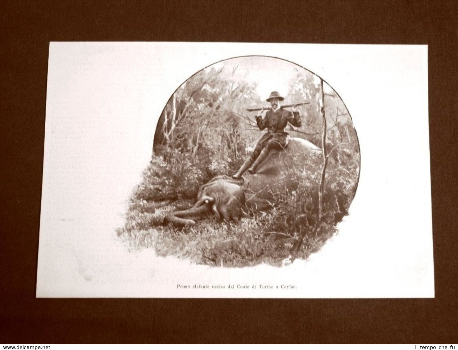 Rara stampa Estratta da Rivista d'epoca del 1899 . .stampa che ha quindi oltre 116 anni! Il Conte di Torino nella caccia in India nel 1899 Elefante ucciso in Ceylan II1899-021 Dimensioni Cm 23,00 x 16,00 Qualora vogliate delle scansioni migliori contattateci, soddisferemo ogni vostra richiesta. PaypalCarta di creditoBonifico bancario Accuratamente adagiate su un cartoncino e protette da pellicola trasparente rigida,il tutto viene inserito dentro plico di adeguate dimensioni per proteggerne l'integrità.