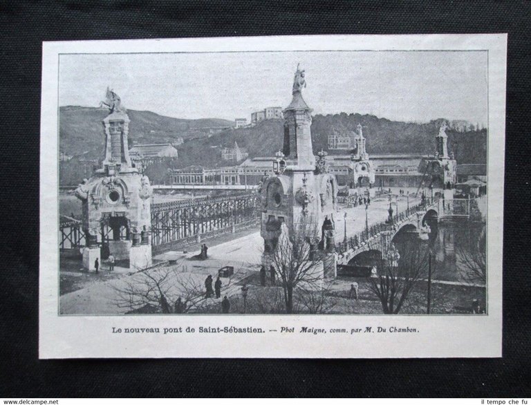 Rara stampa estratta da pubblicazione del 1905 .stampa che ha quindi oltre 113 anni! Il nuovo ponte Maria Cristina a San Sebastian, in Spagna Dimensioni Cm 16,00 x 11,00 Illustration 1905 - 017 Qualora vogliate delle scansioni migliori contattateci, soddisferemo ogni vostra richiesta. Paypal Carta di credito Bonifico bancario Accuratamente adagiate su un cartoncino e protette da pellicola trasparente rigida, il tutto viene inserito dentro plico di adeguate dimensioni per proteggerne l'integrità.