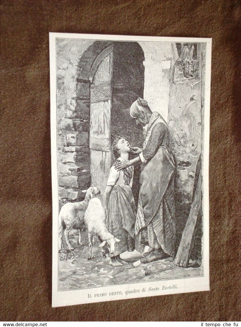 Rara Incisione Estratta da Rivista d'epoca del 1895 Il primo dente Quadro di Sante Bertelli del 1895 II1895-020 Dimensioni Cm 11,00 x 17,00 Qualora vogliate delle scansioni migliori contattateci, soddisferemo ogni vostra richiesta. Paypal Carta di credito Bonifico bancario Accuratamente adagiate su un cartoncino e protette da pellicola trasparente rigida, il tutto viene inserito dentro plico di adeguate dimensioni per proteggerne l'integrità.