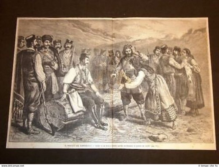 Rara Incisione Estratta da Rivista d'Epoca di metà '800 Enorme Il Principe del Montenegro ascolta le querele dei sudditi GIV-008T Dimensioni Cm 40,00 x 27,00 Qualora vogliate delle scansioni migliori contattateci, soddisferemo ogni vostra richiesta. Paypal Carta di credito Bonifico bancario Accuratamente adagiate su un cartoncino e protette da pellicola trasparente rigida il tutto viene inserito dentro plico di adeguate dimensioni per proteggerne l'integrità