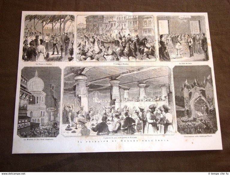 Rara incisione Estratta da Rivista d'epoca del 1875. .stampa che ha quindi oltre 139 anni! Il Principe di Galles in India nel 1875 Sbarco a Bombay, Moschea di Dry Sood Illuminazione della strada per Parell, Festa da ballo Pranzo di gala nelle grotte di Elefanta II1875-001 Dimensioni Cm 34,00 x 25,00 Qualora vogliate delle scansioni migliori contattateci, soddisferemo ogni vostra richiesta. PaypalCarta di creditoBonifico bancario Accuratamente adagiate su un cartoncino e protette da pellicola trasparente rigida,il tutto viene inserito dentro plico di adeguate dimensioni per proteggerne l'integrità.