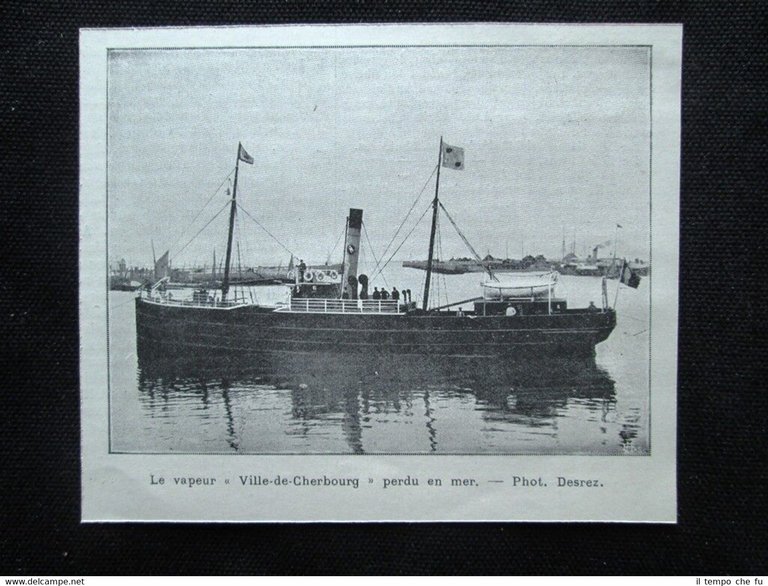 Il vapore Ville de Cherbourg perso in mare Stampa del 1903
