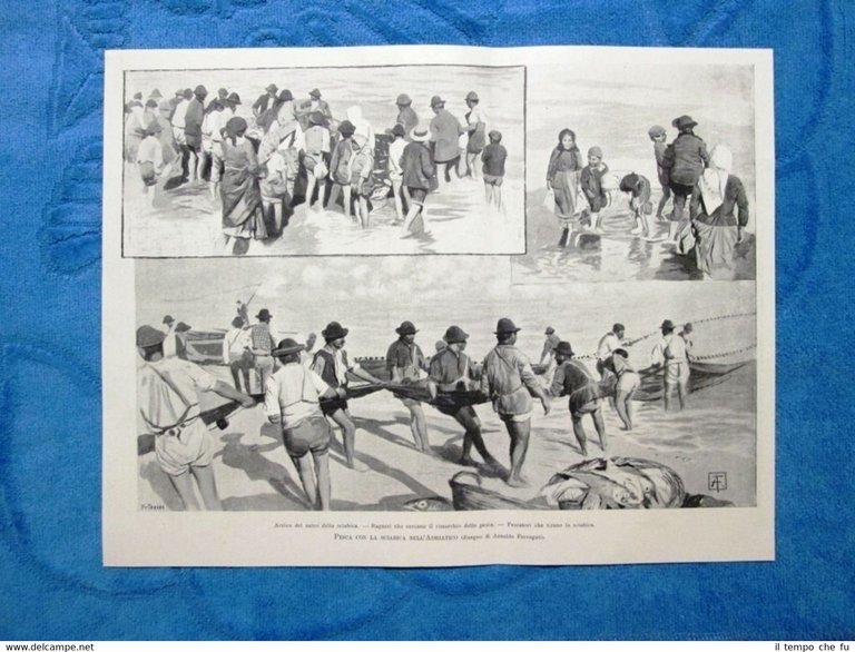 Illustrazione Italiana 1898 - Pesca con la sciabica nell'Adriatico