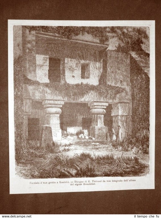 In India nel 1863 Facciata di una grotta di Kanheri