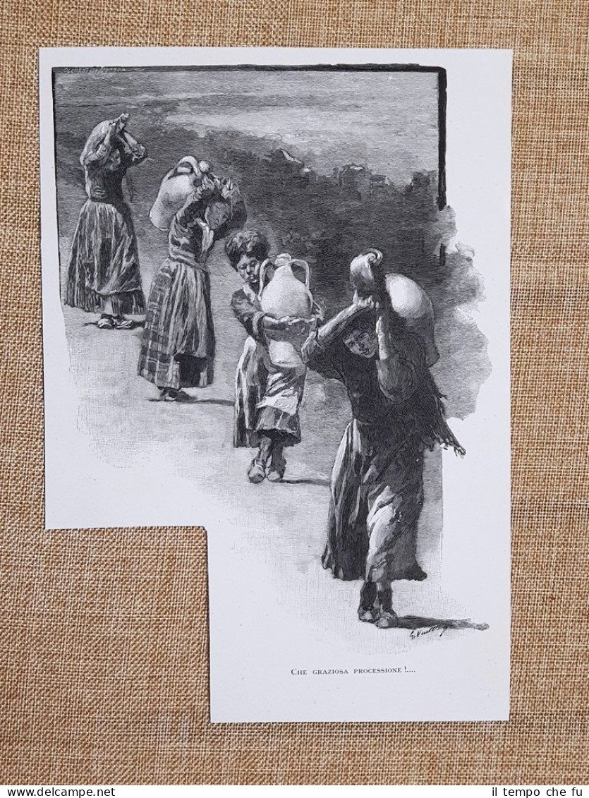 In Sicilia nel 1897 Enna o Castrogiovanni Portatrici d'anfora Vuillier Rara stampa estratta da pubblicazione del 1897 In Sicilia nel 1897 Enna o Castrogiovanni Portatrici d'anforaCodice articolo: SDI-038Dimensioni: Cm 14,00 x 21,00Estratta dalla rarissima opera "La Sicilia, impressioni del presente e del passato"Opera letteraria e grafica di Gastone Vuiller che elaborò, dal suo viaggio in Sicilia effettuato nella primavera del 1893, disegni definiti in ogni loro particolare e ben rispondenti alla realtàPubblicata dai Fratelli Treves di Milano nel 1897