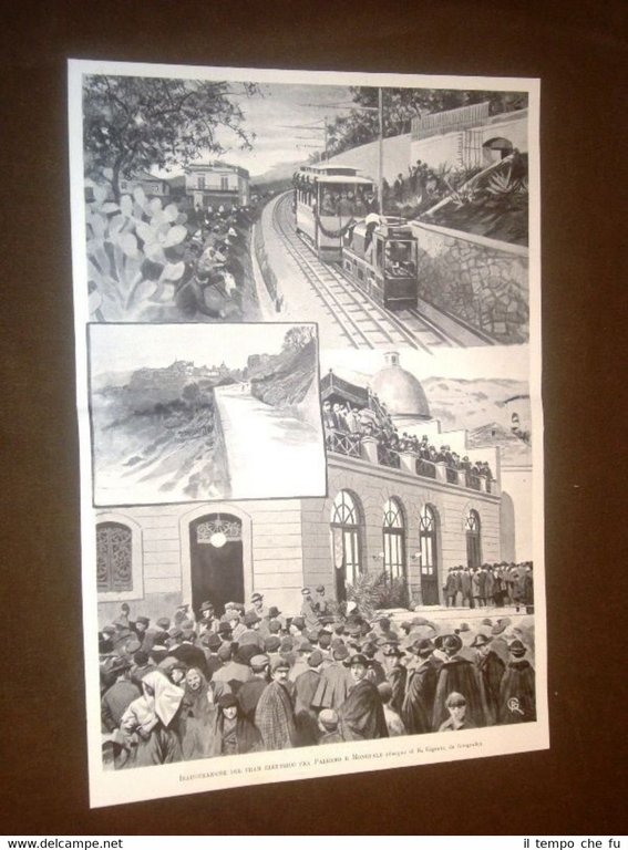 Inaugurazione del Tram o Tramway elettrico tra Palermo e Monreale nel 1908