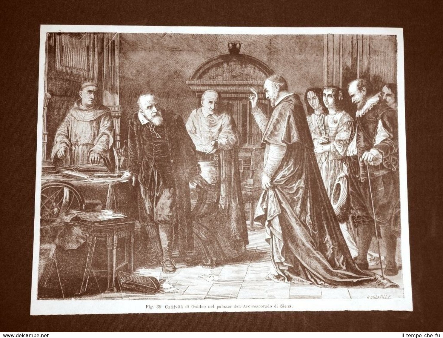 Incisione del 1875 Galileo Galilei segregato nell'Arcivescovado di Siena