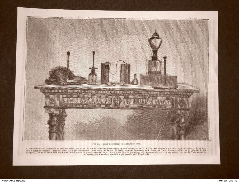 Incisione del 1875 Invenzione La pila Cimeli scientifici di Alessandro Volta