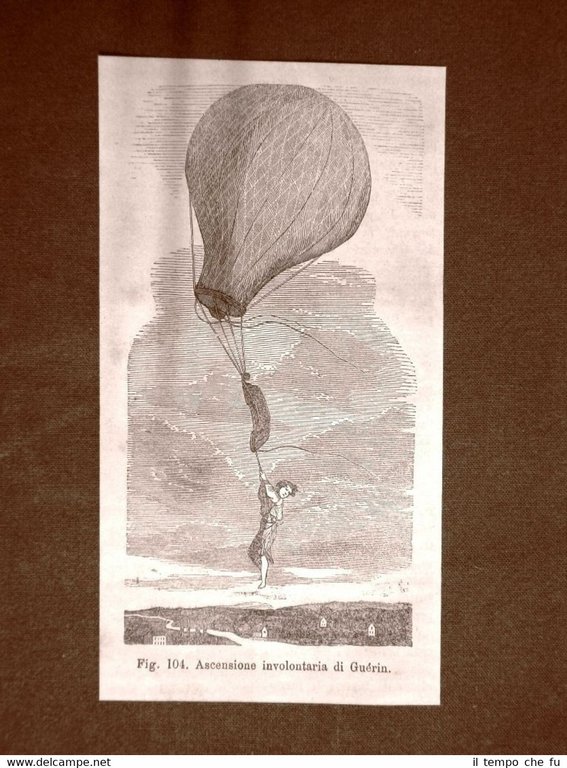 Incisione del 1875 Pallone aerostatico aerostato Ascensione involontaria Guérin