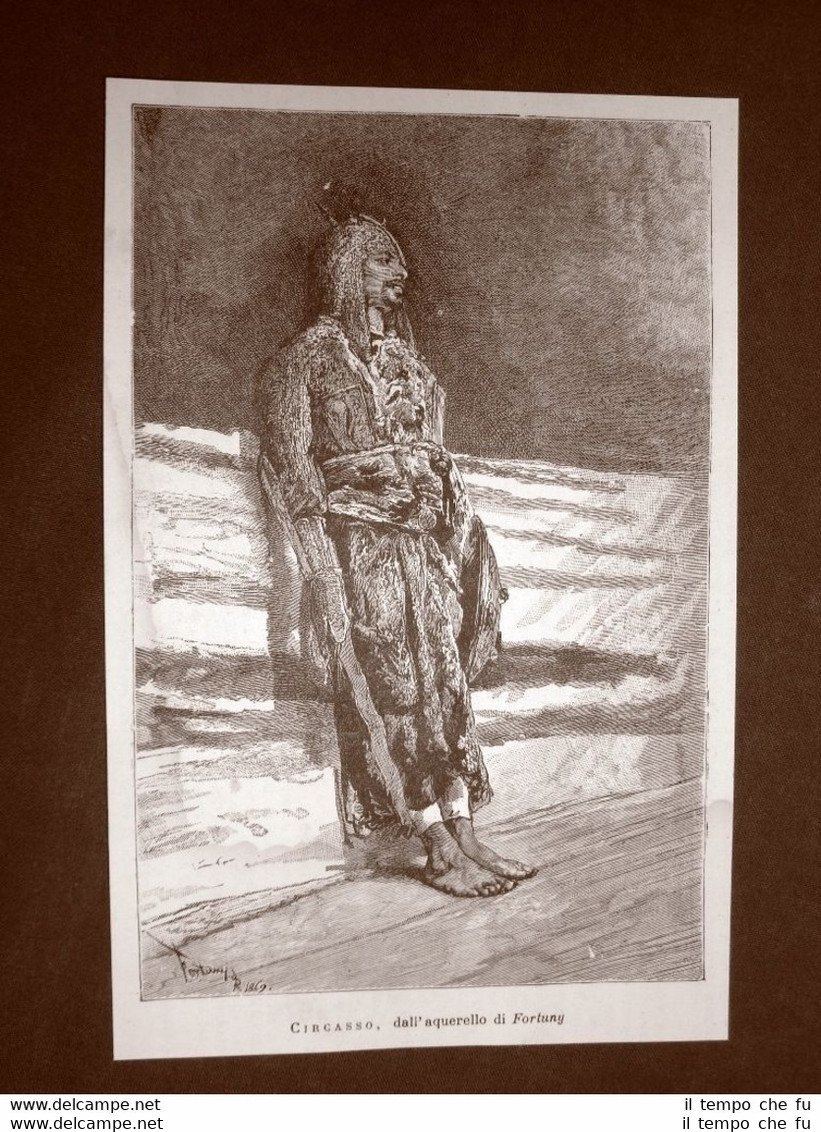 Incisione del 1876 Circasso Uomo del gruppo etnico dei circassi di Fortuny