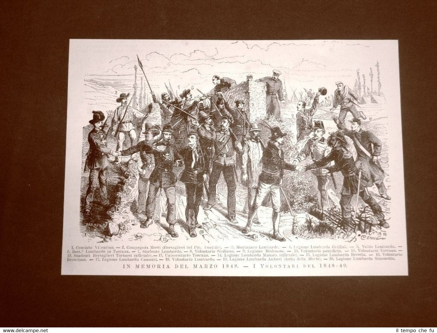 Incisione del 1877 In memoria del marzo 1848 Volontari del 1848-49