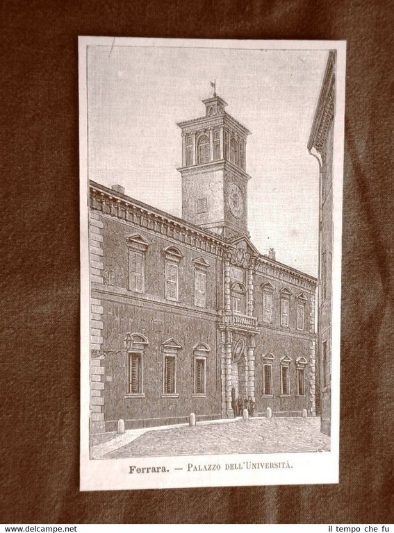 Incisione del 1891 Ferrara, Palazzo dell'Università - Emilia Romagna