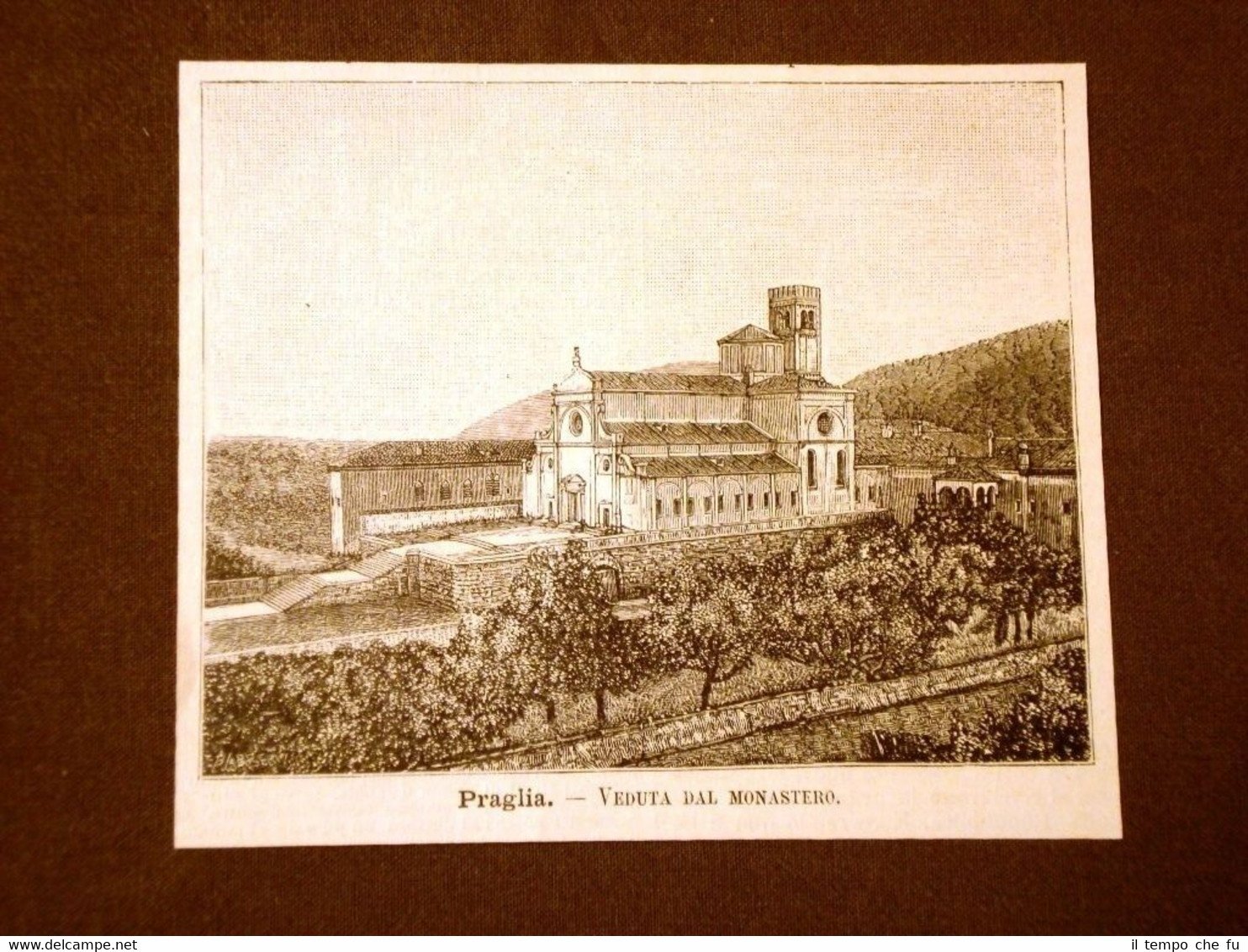 Incisione del 1891 Praglia, veduta del Monastero - Lombardia