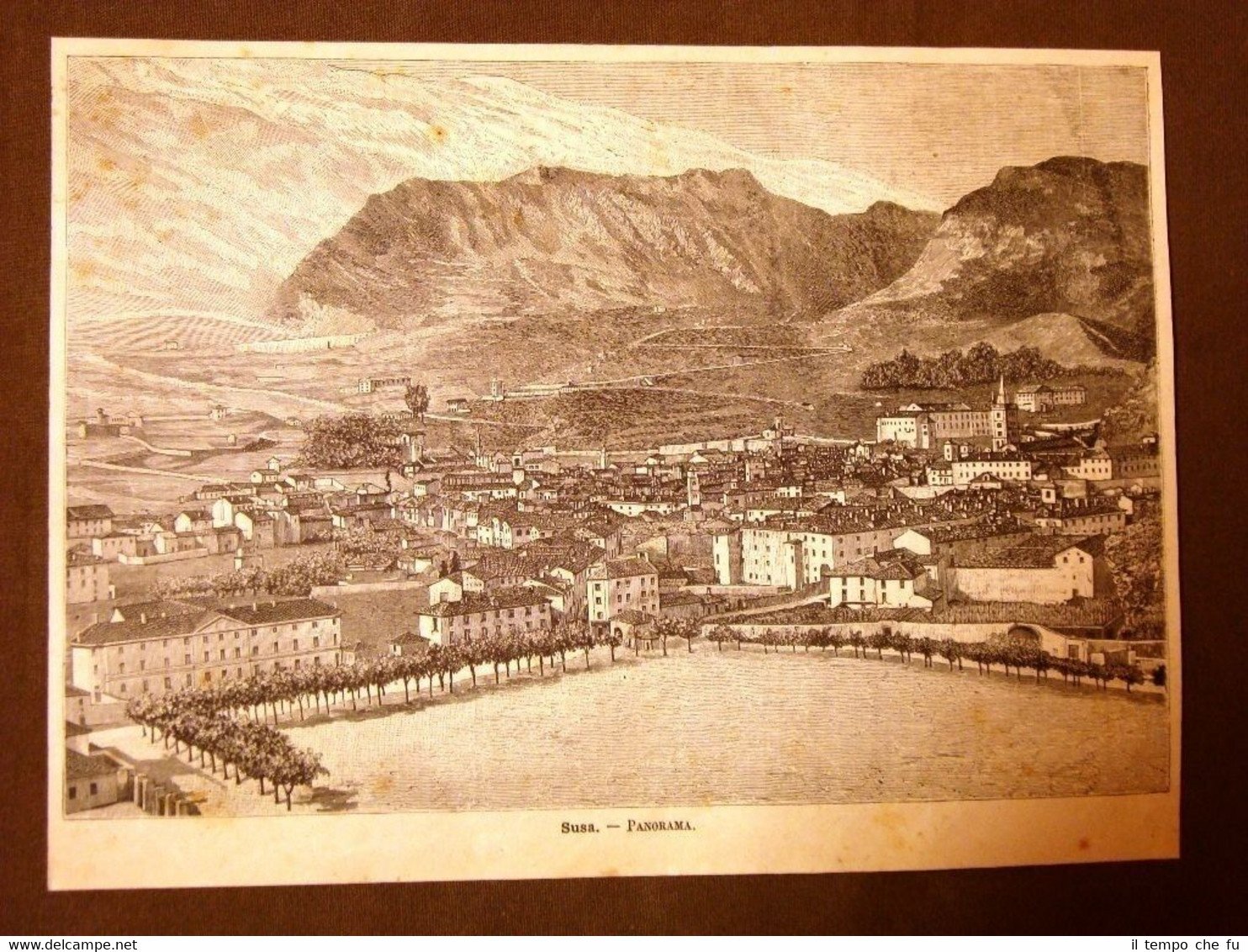 Incisione del 1891 Rarissimo panorama di Val di Susa - Piemonte