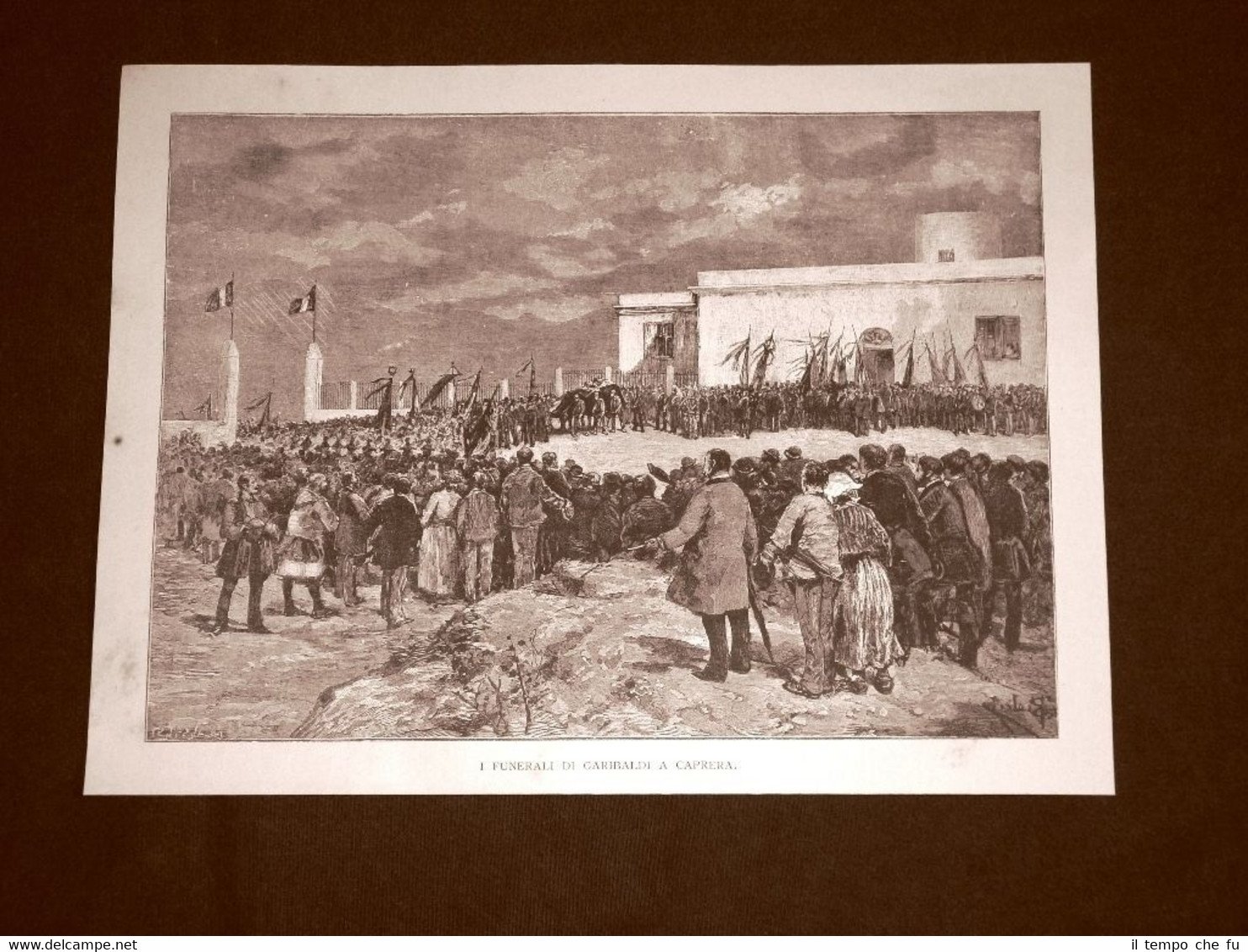 Incisione del 1892 Il funerale di Giuseppe Garibaldi a Caprera nel 1882