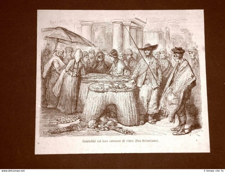 Incisione di Gustave Dorè del 1874 Contadini cuevanos di vinco Spagna Davillier