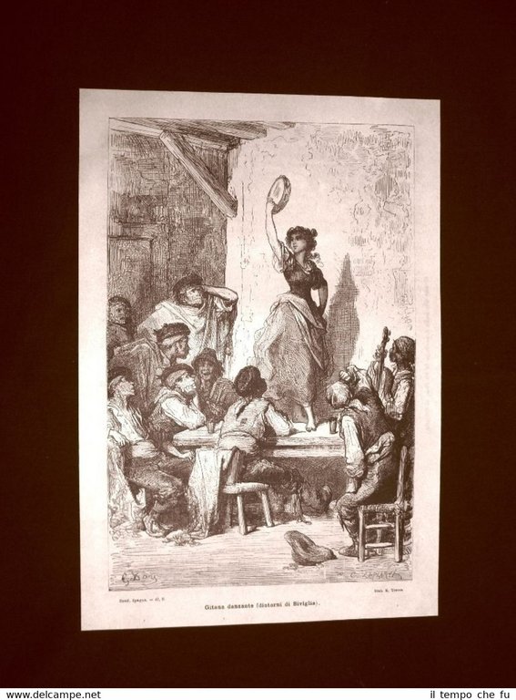 Incisione di Gustave Dorè del 1874 Gitana danzante Siviglia Spagna