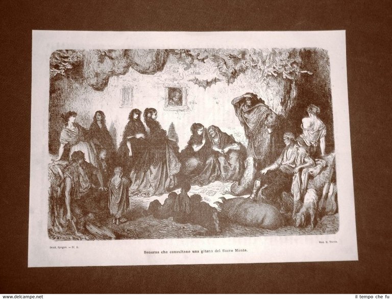 Rara incisione in legno di Gustave Dorè del 1874. .incisione che ha quindi oltre 142 anni! In perfetto stato di conservazione Estratta dall'introvabile e rara opera "Viaggio in Ispagna del Barone Carlo Davillier" Pubblicato dai Fratelli Treves in Milano nel 1874 Moda e costume in Spagna nell'800 Senoras che consultano una Gitana al Sacro Monte Granata Spagna Dorè - 025 Dimensioni Cm 27,00 x 20,00 Qualora vogliate delle scansioni migliori contattateci, soddisferemo ogni vostra richiesta. PaypalCarta di creditoBonifico bancario Accuratamente adagiate su un cartoncino e protette da pellicola trasparente rigida,il tutto viene inserito dentro plico di adeguate dimensioni per proteggerne l'integrità.