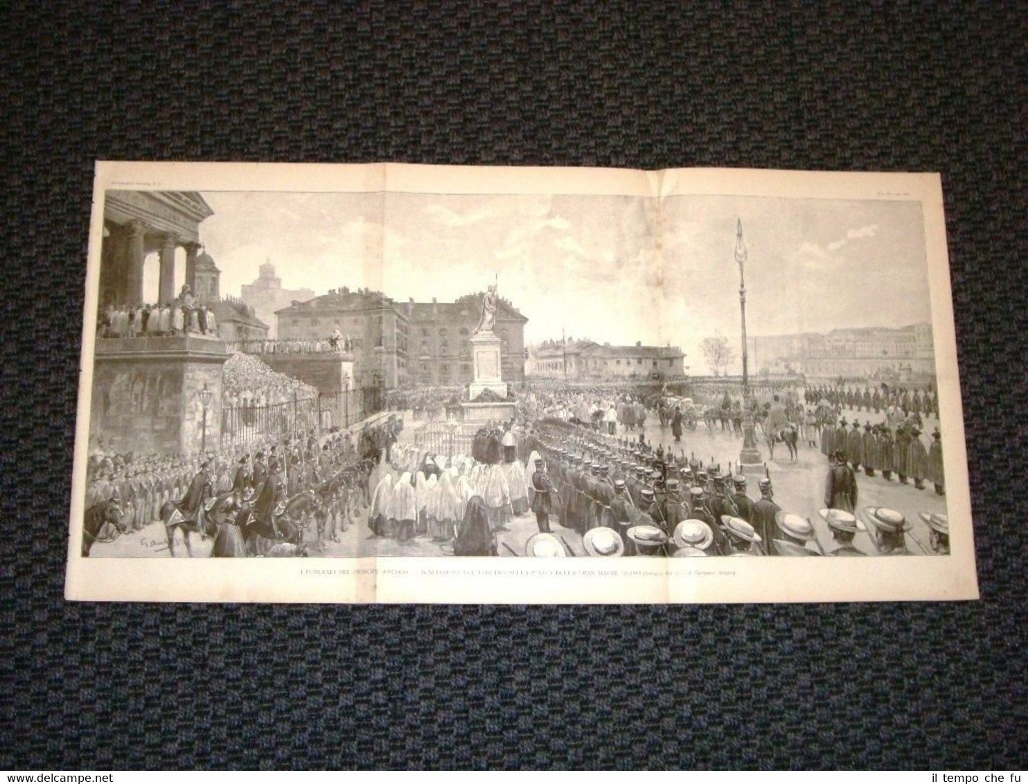 Rara Incisione Estratta da Rivista d'epoca del 1890 . .incisione che ha quindi oltre 124 anni! Incisione enorme del 1890 Torino Funerale del Principe Amedeo di Savoia Benedizione del feretro sulla Piazza della Gran Madre di Dio Disegno dal vero di Gennaro Amato II1890-070 Dimensioni Cm 78,00 x 37,00 Qualora vogliate delle scansioni migliori contattateci, soddisferemo ogni vostra richiesta. PaypalCarta di creditoBonifico bancario Accuratamente adagiate su un cartoncino e protette da pellicola trasparente rigida,il tutto viene inserito dentro plico di adeguate dimensioni per proteggerne l'integrità.