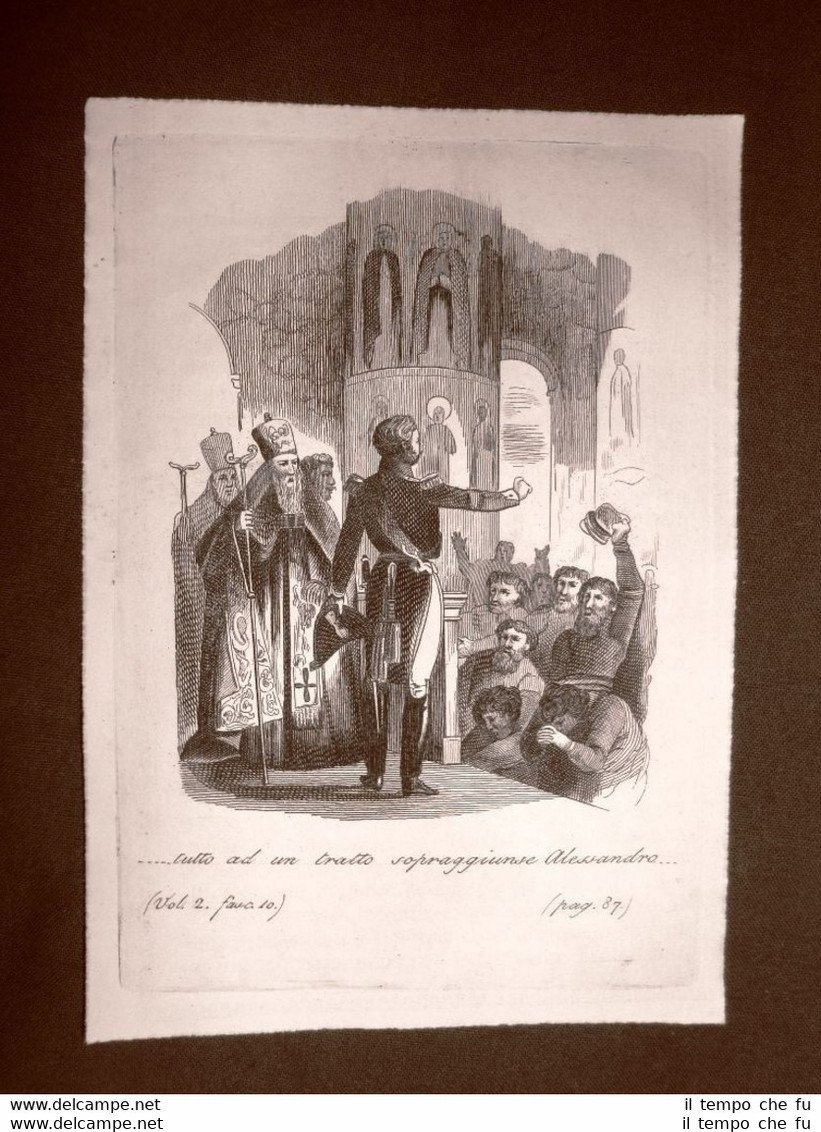 Incisione in rame del 1841 Napoleone Bonaparte Russia 1812 Aleksandr I Romanov