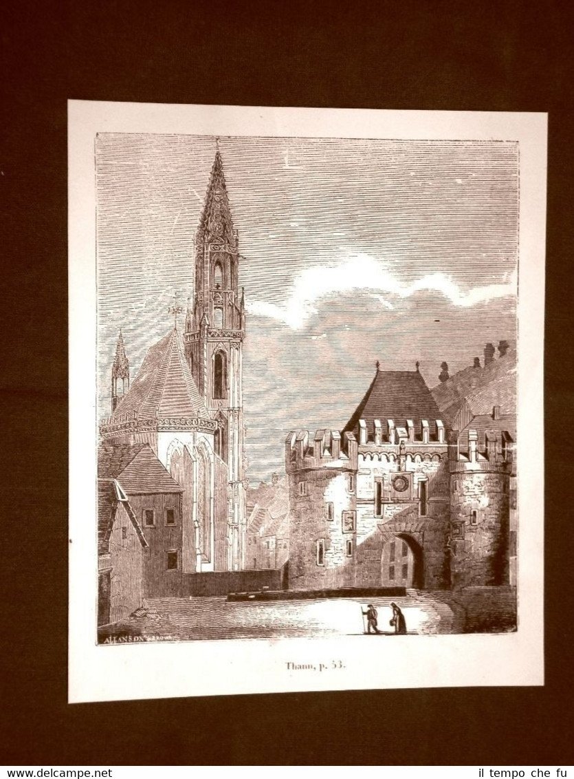 Incisione in rame del 1849 Veduta Città di Thann o Tànn Francia