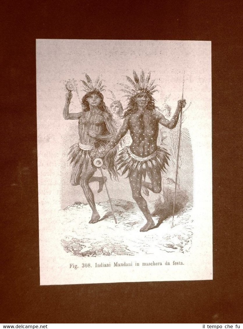 Rara Incisione Estratta da pubblicazione del 1883 . .incisione che ha quindi oltre 134 anni! Indiani Mandan o Mandani in machera da festa nel 1883 Nord America Figuer-004 Dimensioni Cm 10,00 x 14,00 Qualora vogliate delle scansioni migliori contattateci, soddisferemo ogni vostra richiesta. PaypalCarta di creditoBonifico bancario Accuratamente adagiate su un cartoncino e protette da pellicola trasparente rigida,il tutto viene inserito dentro plico di adeguate dimensioni per proteggerne l'integrità.