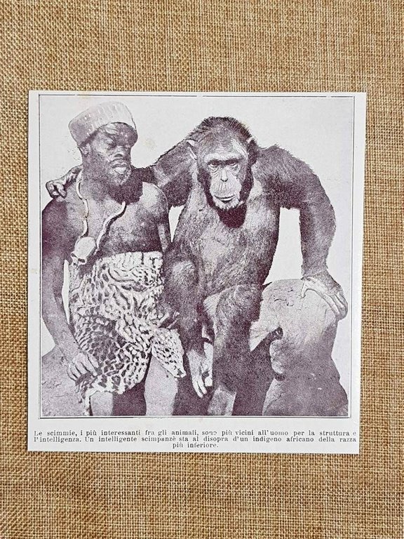 Indigeno africano e scimpanzè Stampa del 1930 Rara stampa estratta da pubblicazione del 1930 Indigeno africano e scimpanzè Codice prodotto: S.I. - 037   Dimensioni: Cm 12,00 x 13,00