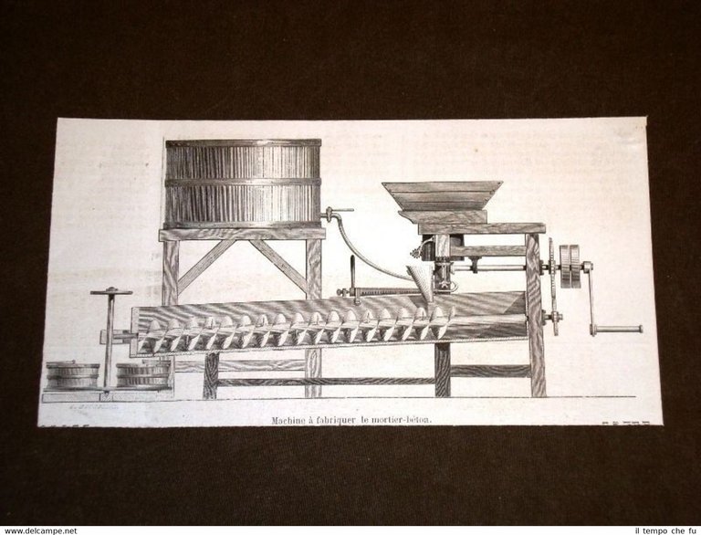Rara Incisione Estratta da Rivista d'epoca del 1858 Invenzioni del 1858 Macchina per fabbricare la malta cementizia MI1858-005T Dimensioni Cm 20,50 x 11,00 Qualora vogliate delle scansioni migliori contattateci, soddisferemo ogni vostra richiesta. Paypal Carta di credito Bonifico bancario Accuratamente adagiate su un cartoncino e protette da pellicola trasparente rigida il tutto viene inserito dentro plico di adeguate dimensioni per proteggerne l'integrità