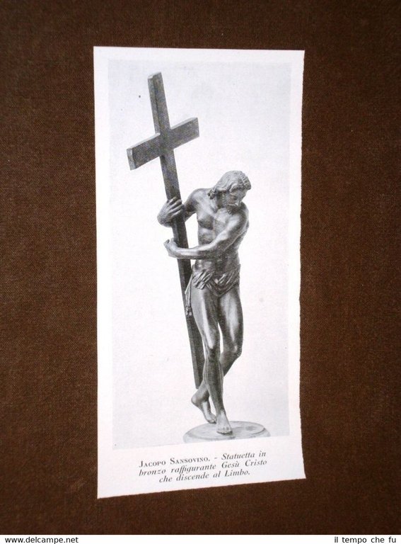 Rara stampa Estratta da Rivista d'epoca del 1923 . .stampa che ha quindi oltre 91 anni! Jacopo Sansovino Statuetta in bronzo di Gesù Cristo che discende al Limbo II1923-013 Dimensioni Cm 8,00 x 16,00 Qualora vogliate delle scansioni migliori contattateci, soddisferemo ogni vostra richiesta. PaypalCarta di creditoBonifico bancario Accuratamente adagiate su un cartoncino e protette da pellicola trasparente rigida,il tutto viene inserito dentro plico di adeguate dimensioni per proteggerne l'integrità.