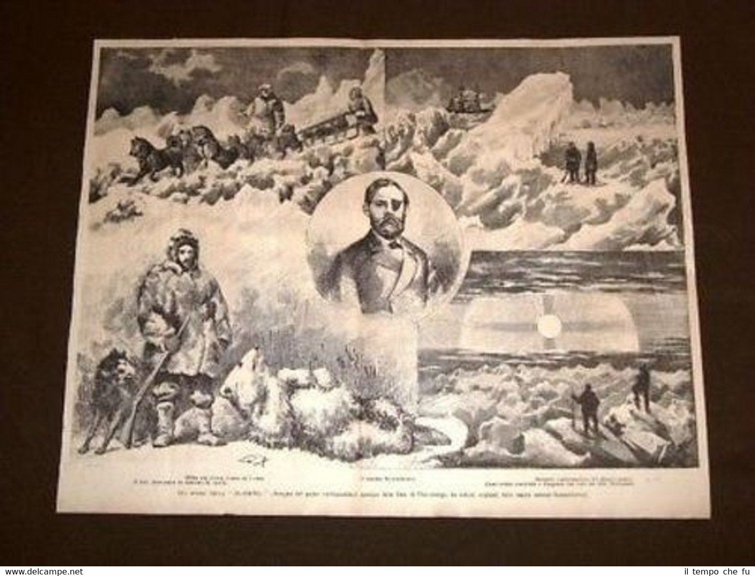RARA INCISIONE OTTOCENTESCA ESTRATTA DA RIVISTA D'EPOCA Gli avanzi della Jeannette Dott. Newcombe in costume da caccia Tenente Dannenhower Alone solare al Polo II1882-028T Dimensioni Cm 32,00 x 25,50 Qualora vogliate delle scansioni migliori contattateci, soddisferemo ogni vostra richiesta. Paypal Carta di credito Bonifico bancario Accuratamente adagiate su un cartoncino e protette da pellicola trasparente rigida il tutto viene inserito dentro plico di adeguate dimensioni per proteggerne l'integrità
