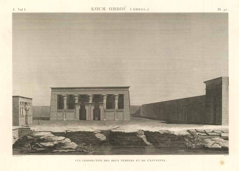 Koum Ombou (Ombos) - Vue perspective des deux temples et de l'enceinte