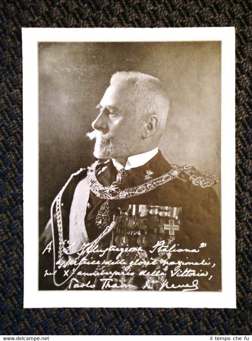 Rara stampa Estratta da Rivista d'epoca del 1928 . .stampa che ha quindi oltre 87 anni! Raro ritratto con dedica dopo la fine della prima guerra mondiale del 1914-1918 WW1 L'Ammiraglio della Regia Marina d'Italia Paolo Emilio Thaon di Revel nel 1928 Duca del Mare II1928-035 Dimensioni Fronte/retro Cm 21,00 x 28,00 + Cm 21,00 x 28,00 Qualora vogliate delle scansioni migliori contattateci, soddisferemo ogni vostra richiesta. PaypalCarta di creditoBonifico bancario Accuratamente adagiate su un cartoncino e protette da pellicola trasparente rigida,il tutto viene inserito dentro plico di adeguate dimensioni per proteggerne l'integrità.