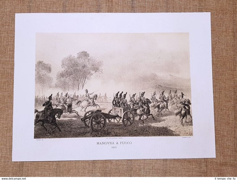Rara stampa estratta da pubblicazione del 1895 L'artiglieria in Italia nell'800 Composizione di una manovra a fuoco nel 1865 Codice articolo: BRSGL-08 Dimensioni: Cm 29,00 x 38,00 Paypal Carta di credito Bonifico bancario Spedizione con posta ordinaria o raccomandata scelta dall'Acquirente nel momento del pagamento Clicca qui per accedere al nostro Store ed al suo sterminato archivio