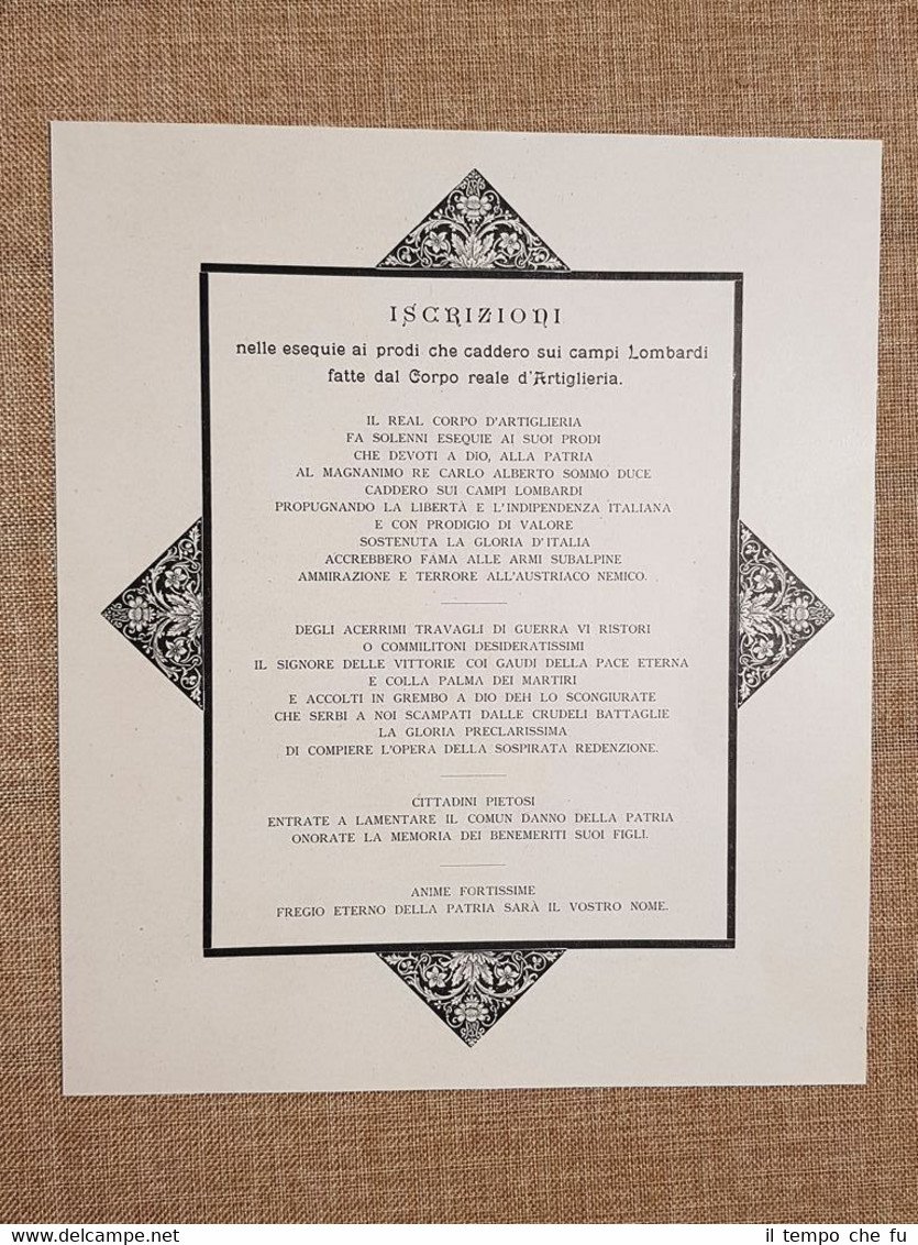 L'artiglieria in Italia nell'800 Iscrizioni nelle esequie ai caduti in Lombardia