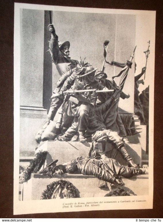 L'Assedio di Roma Monumento a Garibaldi sul Gianicolo di E. Gallori + Manifesto