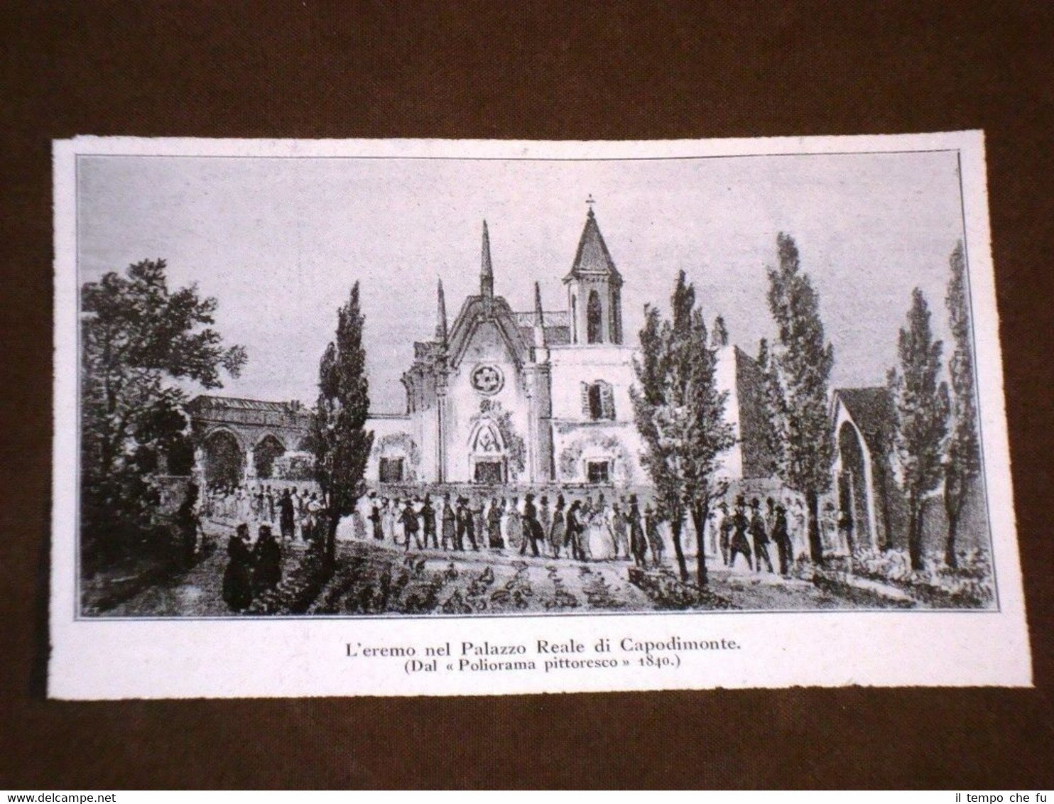 Rara stampa Estratta da Rivista d'epoca del 1920. .stampa che ha quindi oltre 94 anni! L'Eremo del Palazzo Reale di Capodimonte Dal Poliorama Pittoresco del 1840 II1920-042 Dimensioni Cm 16,00 x 10,00 Qualora vogliate delle scansioni migliori contattateci, soddisferemo ogni vostra richiesta. PaypalCarta di creditoBonifico bancario Accuratamente adagiate su un cartoncino e protette da pellicola trasparente rigida,il tutto viene inserito dentro plico di adeguate dimensioni per proteggerne l'integrità.