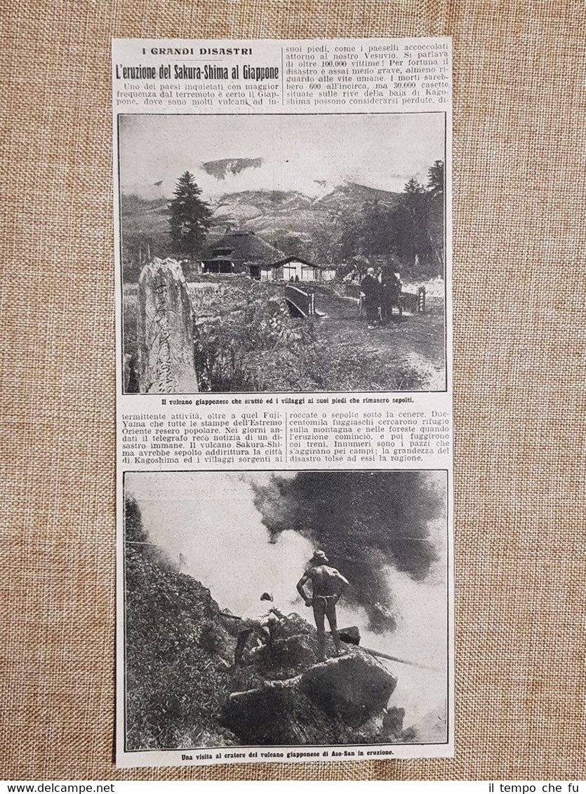 L'eruzione del vulcano Sakura - Shima in Giappone nel 1914 Aso - San Rara stampa estratta da pubblicazione del 1914L'eruzione del vulcano Sakura - Shima in Giappone nel 1914 Villaggi sepolti Visita al cratere di Aso - San in eruzioneCodice articolo: Stapo-066 Dimensioni: Cm 12,00 x 26,00