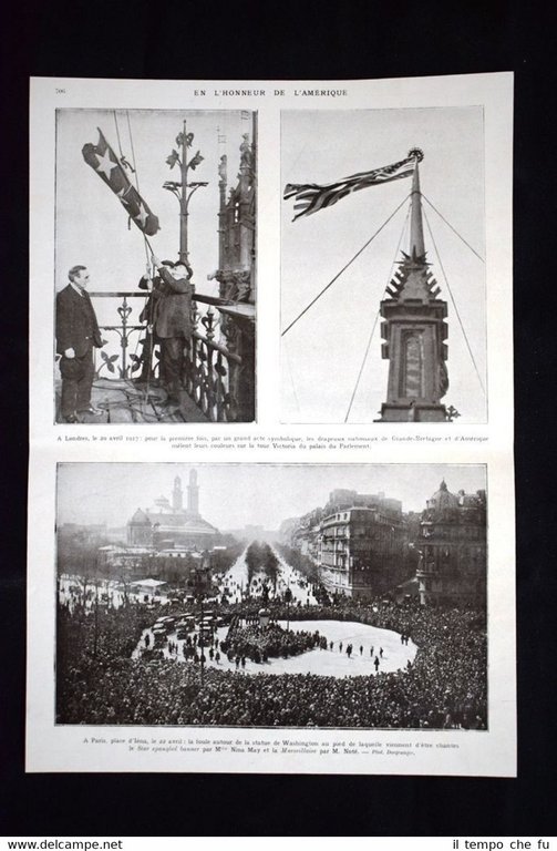 Rara stampa Estratta da pubblicazione del 1922 sulla Prima Guerra Mondiale del 1914-1918. .stampa che ha quindi oltre 95 anni! Rare print Extracted from publication of 1922 about the First World War of 1914 -1918. . press that has so over 95 years! Impression rare Extrait de la publication de 1922 sur la Première Guerre mondiale 1914-1918 . . press qui a tellement plus de 95 ans! Seltene druck Gewonnen aus der Veröffentlichung von 1922 auf dem Ersten Weltkrieg 1914-1918 . . Drücken, die so über 95 Jahren! En l'honneur de l'Amerique A Londres, le 20 avril 1917: pour la première fois, par un grand acte symbolique, les drapeaux nationaux de Grande-Bretagne et d'Amerique melent leurs couleurs sur la tour Victoria du palais du Parlement. A Paris, place d'Iéna, le 22 avril: la foule autour de la statue de Washington au pied de laquelle viennent d'etre chantes le Star spangled banner par M.lle Nina May et la Marseillaise par M. Noté Dimensioni Cm 25,00 x 35,00 ADLG - 037 Qualora vogliate delle scansioni migliori contattateci, soddisferemo ogni vostra richiesta. PaypalCarta di creditoBonifico bancario La stampa verrà inserita all'interno di plico di adeguate dimensioni per proteggerne l'integrità