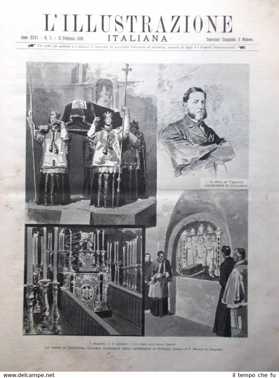 L'Illustrazione Italiana del 12 Febbraio 1899 Resti Colombo Tolstoi Caprivi Zedé