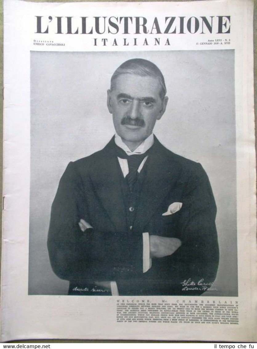 L'Illustrazione Italiana del 15 Gennaio 1939 Chamberlain Roma Surrealismo Franco