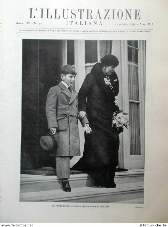 L'Illustrazione Italiana Rivista originale del 21 Ottobre 1934 Anno 61 - N. 42 Rarità per appassionati e collezionisti Segue sotto solamente un saggio del ricco contenuto presente Illustrato in copertina (segue foto): Re Pietro II con la nonna Regina Maria di Romania Illustrazione presente nelle pagine interne (segue foto): La salma di Re Alessandro in patria Altra Illustrazione presente nelle pagine interne (segue foto): Il megaspileon Tra gli argomenti trattati e le notizie contenute: I solenni funerali di Barhou Raymond Poincaré Il teatro drammatico al convegno internazionale Volta Problemi marinari: CC. TT. Autunno Euganeo La nuova frontiera fra la Libia e il Sudan anglo-egiziano Come si viaggia sulle linee aeree americane La turbina a vapore di mercurio .e tanto altro ancora! Qualora vogliate maggiori delucidazioni contattateci. In questo negozio troverai un'intera categoria dedicata alla collezione dell'Illustrazione Italiana , ne inseriamo diverse giornalmente. Sotto il link diretto a tutta la collezione: Riviste disponibili Cliccaci sopra, troverai di certo ciò che cerchi! L'illustrazione Italiana è stata una rivista settimanale italiana con sede a Milano, pubblicata ininterrottamente dal 1873 al 1962 per un totale di quasi 5 000 numeri. Fondata a Milano con la testata «Nuova illustrazione universale», fu edita dalla casa editrice Fratelli Treves, fondata da Emilio Treves, il quale fu anche il primo direttore della rivista. L'illustrazione italiana comincia ad avere un'ampia diffusione negli ambienti della medio-alta borghesia, grazie alla qualità degli articoli e soprattutto delle illustrazioni, spesso affidate ad artisti di primo piano come Achille Beltrame, Pietro Scoppetta, Luigi Bompard, Giuseppe Cosenza ed Ettore Ximenes (il quale svolgeva anche le funzioni di vicedirettore), tale qualità fu mantenuta poi nel tempo anche in seguito all'avvento della fotografia, tecnica che vide rappresentati sulle pagine dell'«Illustrazione» alcuni tra i migliori fotogiornalisti nazionali: Armando Bruni, Mario Crimella, Giulio Parisio ed Emilio Sommariva. Per i testi il periodico si avvalse della collaborazione, in qualità di articolisti, di alcuni dei nomi più importanti della letteratura italiana, fra cui ricordiamo Giosuè Carducci, Grazia Deledda e Luigi Pirandello (premi Nobel per la letteratura), lo scrittore verista Giovanni Verga, il poeta Gabriele D'Annunzio, il critico letterario e favolista Luigi Capuana ed Edmondo De Amicis, autore del celeberrimo romanzo "Cuore", capolavoro della letteratura per ragazzi. La grande fortuna dell'Illustrazione Italiana durò fino alla morte di Emilio Treves (1916), dopo la quale, pur avendo ancora tra i propri collaboratori scrittori del calibro di Eugenio Montale, Elio Vittorini, Salvatore Quasimodo, Riccardo Bacchelli, Italo Pietra, Niccolò Giani e Sergio Solmi, la rivista cominciò a mostrare i segni di un lento declino. La promulgazione delle leggi razziali fasciste accelerò il processo in atto: nel 1939 la Treves dovette cedere l'azienda alla Garzanti. Verso la metà del 1942, in seguito agli eventi della seconda guerra mondiale, L'illustrazione rallentò le sue uscite, fino ad essere trasformata in mensile nel 1951 da Livio Garzanti. Gli anni cinquanta videro la crescita vertiginosa dei rotocalchi, settimanali popolari di attualità. «L'Illustrazione Italiana» vide ridursi progressivamente il suo spazio, finché Garzanti la chiuse nel 1962. L'editore Guanda riprese la testata alla fine del 1981 e la ripubblicò con periodicità bimestrale. Il tentativo non incontrò sufficiente fortuna e la rivista fu chiusa nel 1996. Paypal Carta di credito Bonifico bancario Spedizione con posta ordinaria o raccomandata scelta dall'Acquirente nel momento del pagamento Clicca qui per accedere al nostro Store ed al suo sterminato archivio