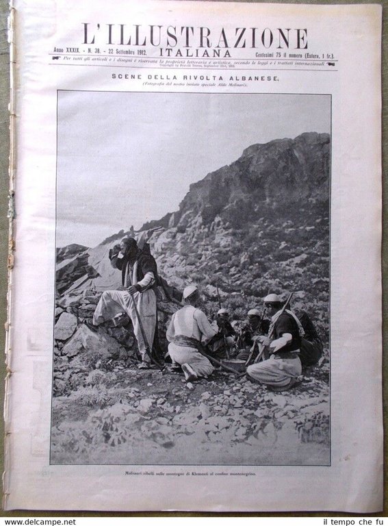 L'Illustrazione Italiana Rivista originale del 22 Settembre 1912 Anno 39 - N. 38 Rarità per appassionati e collezionisti Segue sotto solamente un saggio del ricco contenuto presente Illustrato in copertina (segue foto): Scene della rivolta albanese Illustrazione presente nelle pagine interne (segue foto): Il capitano aviatore Riccardo Moizo Altra Illustrazione presente nelle pagine interne (segue foto): Lo sgombero di Sidi-Alì Tra gli argomenti trattati e le notizie contenute: Il generale Nogi, l'eroe di Port Arthur, suicidatosi con la moglie per devozione alla memoria del defunto imperatore. Rodi: consegna della bandiera offerta dalle signore di Pinerolo al battaglione alpini "Fenestrelle". Il congresso eucaristico a Vienna. Nel Montenegro in armi. L'Uadi e i valloni di Derna, teatro delle nuove operazioni di avanzata in Cirenaica. "Zingari", nuova opera del maestro Leoncavallo all'ippodromo di Londra. Le gare di idroaeroplani a Pallanza. .e tanto altro ancora! NB: PRESENTI SEGNI DI UMIDITA' NEL BORDO DI QUASI TUTTO IL GIORNALE - SCOTCH TRASPARENTE NEL BORDO Qualora vogliate maggiori delucidazioni contattateci. In questo negozio troverai un'intera categoria dedicata alla collezione dell'Illustrazione Italiana , ne inseriamo diverse giornalmente. Sotto il link diretto a tutta la collezione: Riviste disponibili Cliccaci sopra, troverai di certo ciò che cerchi! L'illustrazione Italiana è stata una rivista settimanale italiana con sede a Milano, pubblicata ininterrottamente dal 1873 al 1962 per un totale di quasi 5 000 numeri. Fondata a Milano con la testata «Nuova illustrazione universale», fu edita dalla casa editrice Fratelli Treves, fondata da Emilio Treves, il quale fu anche il primo direttore della rivista. L'illustrazione italiana comincia ad avere un'ampia diffusione negli ambienti della medio-alta borghesia, grazie alla qualità degli articoli e soprattutto delle illustrazioni, spesso affidate ad artisti di primo piano come Achille Beltrame, Pietro Scoppetta, Luigi Bompard, Giuseppe Cosenza ed Ettore Ximenes (il quale svolgeva anche le funzioni di vicedirettore), tale qualità fu mantenuta poi nel tempo anche in seguito all'avvento della fotografia, tecnica che vide rappresentati sulle pagine dell'«Illustrazione» alcuni tra i migliori fotogiornalisti nazionali: Armando Bruni, Mario Crimella, Giulio Parisio ed Emilio Sommariva. Per i testi il periodico si avvalse della collaborazione, in qualità di articolisti, di alcuni dei nomi più importanti della letteratura italiana, fra cui ricordiamo Giosuè Carducci, Grazia Deledda e Luigi Pirandello (premi Nobel per la letteratura), lo scrittore verista Giovanni Verga, il poeta Gabriele D'Annunzio, il critico letterario e favolista Luigi Capuana ed Edmondo De Amicis, autore del celeberrimo romanzo "Cuore", capolavoro della letteratura per ragazzi. La grande fortuna dell'Illustrazione Italiana durò fino alla morte di Emilio Treves (1916), dopo la quale, pur avendo ancora tra i propri collaboratori scrittori del calibro di Eugenio Montale, Elio Vittorini, Salvatore Quasimodo, Riccardo Bacchelli, Italo Pietra, Niccolò Giani e Sergio Solmi, la rivista cominciò a mostrare i segni di un lento declino. La promulgazione delle leggi razziali fasciste accelerò il processo in atto: nel 1939 la Treves dovette cedere l'azienda alla Garzanti. Verso la metà del 1942, in seguito agli eventi della seconda guerra mondiale, L'illustrazione rallentò le sue uscite, fino ad essere trasformata in mensile nel 1951 da Livio Garzanti. Gli anni cinquanta videro la crescita vertiginosa dei rotocalchi, settimanali popolari di attualità. «L'Illustrazione Italiana» vide ridursi progressivamente il suo spazio, finché Garzanti la chiuse nel 1962. L'editore Guanda riprese la testata alla fine del 1981 e la ripubblicò con periodicità bimestrale. Il tentativo non incontrò sufficiente fortuna e la rivista fu chiusa nel 1996. Paypal Carta di credito Bonifico bancario Spedizione con posta ordinaria o raccomandata scelta dall'Acquirente nel momento del pagamento