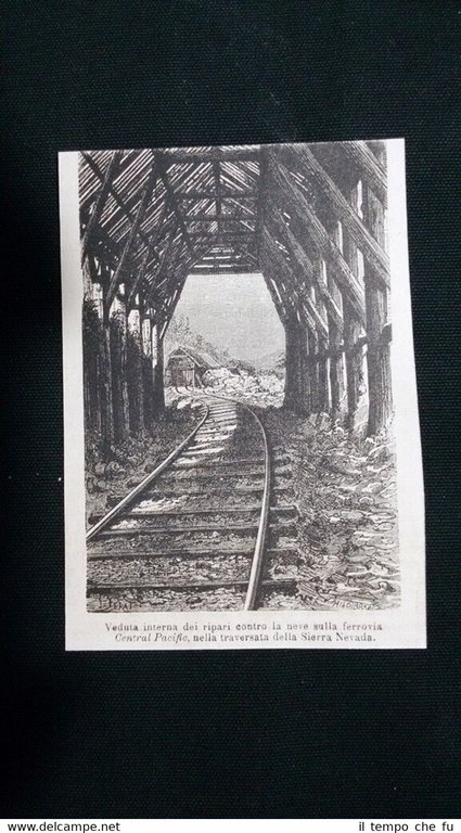 Rara incisione estratta da pubblicazione del 1876. .incisione che ha quindi oltre 141 anni! Dall'Opera L. Simonin: Attraverso gli Stati Uniti, dall'Atlantico al Pacifico Veduta interna dei ripari contro la neve sulla ferrovia Central Pacific, nella traversata della Sierra Nevada Dimensioni Cm 9,00 x 13,00 EP1876 - 115 Qualora vogliate delle scansioni migliori contattateci, soddisferemo ogni vostra richiesta. Paypal Carta di credito Bonifico bancario Accuratamente adagiate su un cartoncino e protette da pellicola trasparente rigida, il tutto viene inserito dentro plico di adeguate dimensioni per proteggerne l'integrità.