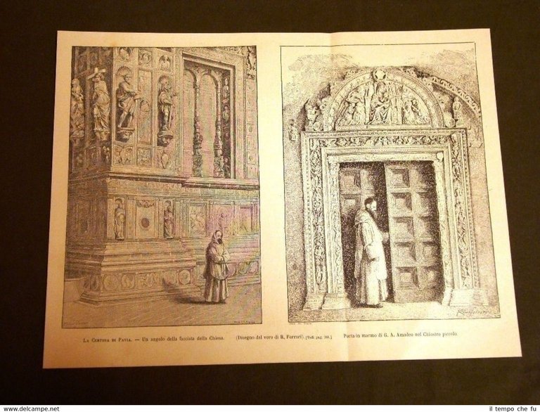 Rara Incisione Estratta da Rivista d'epoca del 1886 La Certosa di Pavia nel 1886 Facciata e Porta in marmo di G.A.Amadeo II1886-014T Cm 33,00 x 25,00 Qualora vogliate delle scansioni migliori contattateci, soddisferemo ogni vostra richiesta. Paypal Carta di credito Bonifico bancario Accuratamente adagiate su un cartoncino e protette da pellicola trasparente rigida il tutto viene inserito dentro plico di adeguate dimensioni per proteggerne l'integrità