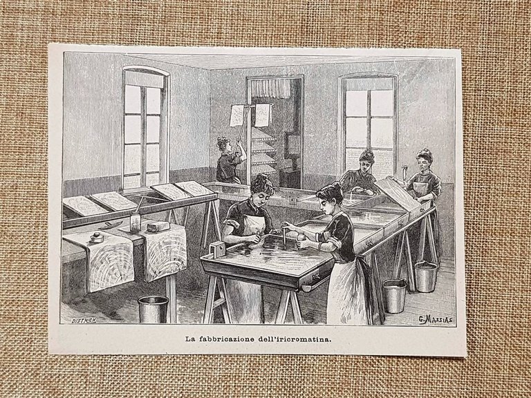 La fabbricazione dell'iricromatina nel 1896 Rara stampa estratta da pubblicazione del 1896  La fabbricazione dell'iricromatina nel 1896 Codice prodotto: NEDA 1896-063  Dimensioni: Cm 16,00 x 12,00
